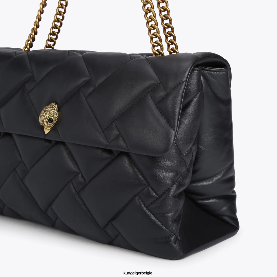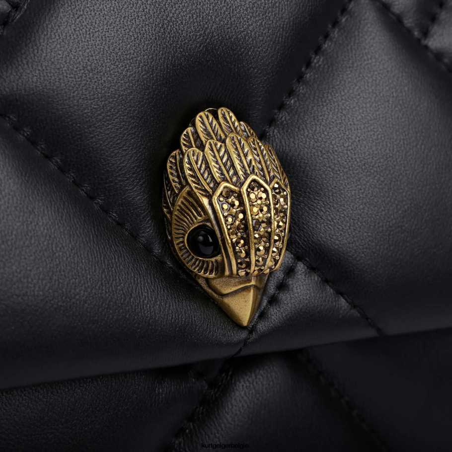 De xxl Kensington zachte tas is gemaakt van zacht gewatteerd lamsleer met geweven patroon. De antieke koperen adelaarskop is voorzien van ondoorzichtige koperen kristallen en zwarte kristallen ogen op de voorflap.
