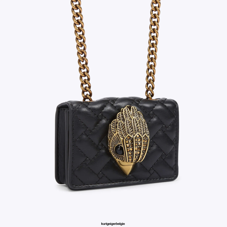 De micro Kensington-tas is gemaakt van zacht lamsleer met doorgestikte stiksels op de langwerpige flap. er is een oversized antieke koperen adelaarskop met all-over veren op de voorflap.