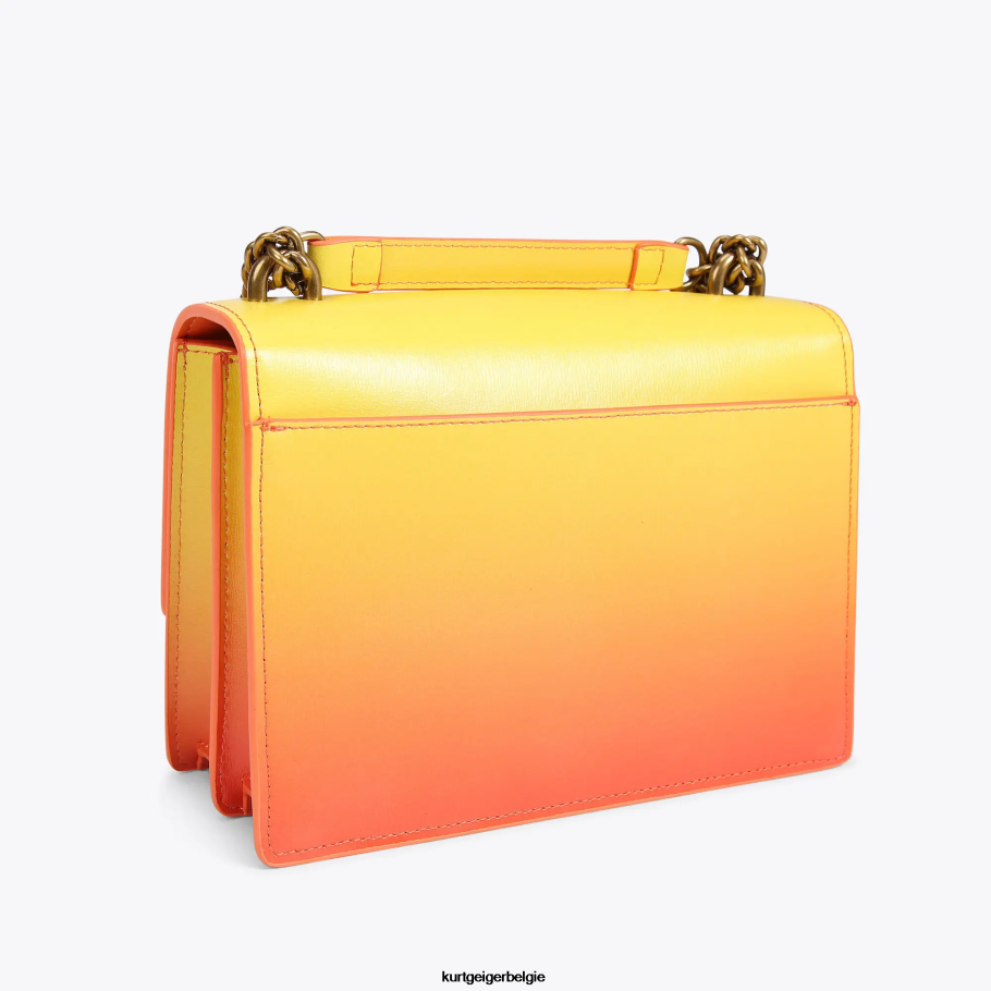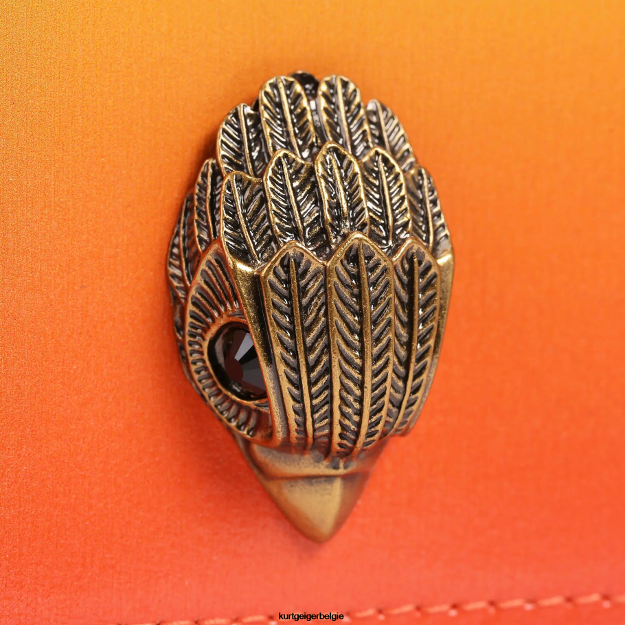 De shoreditch crossbody is gemaakt van mandarijngradiënt leer met structuur. de voorflap is bedekt met een antieke koperen adelaarskop met all-over verendetails.