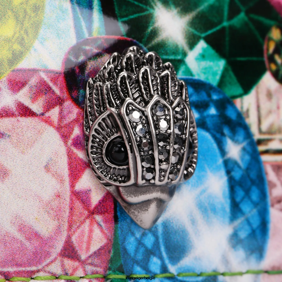 de extra kleine shoreditch crossbody is gemaakt van lakleer met juwelenprint, ontworpen in eigen huis. de voorflap is bedekt met een antieke zilveren adelaarskop.