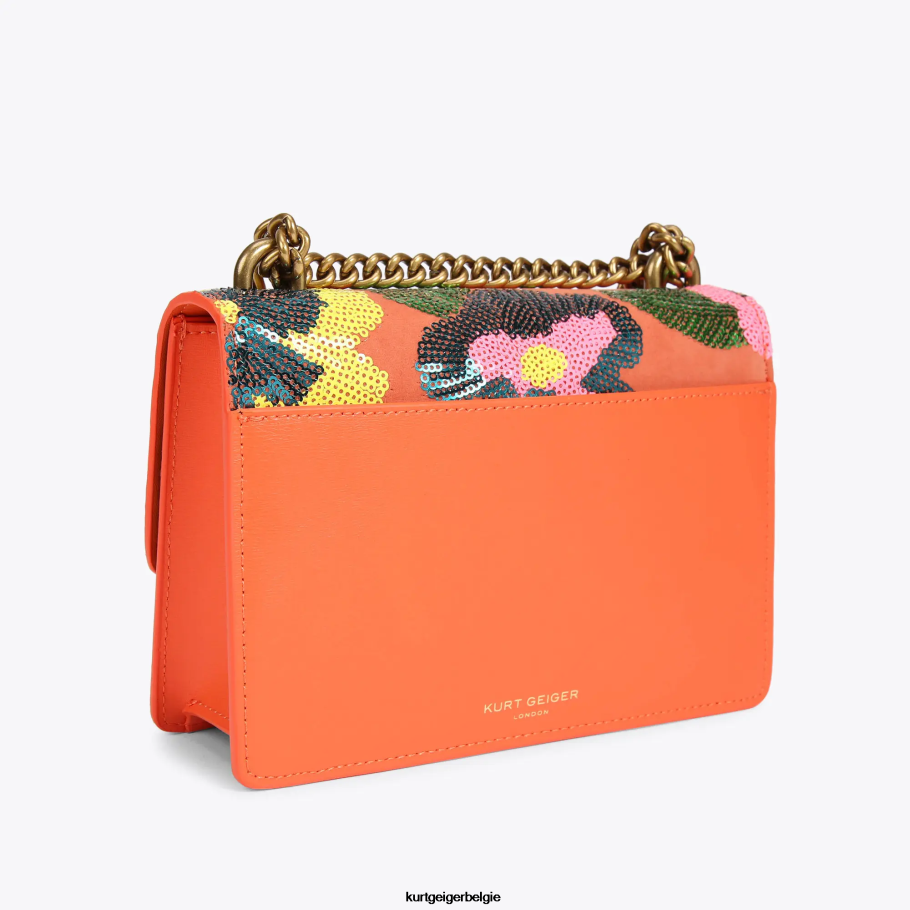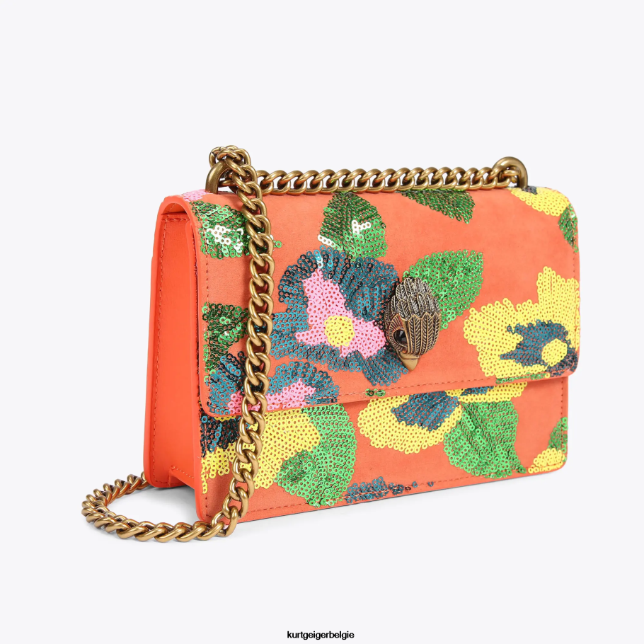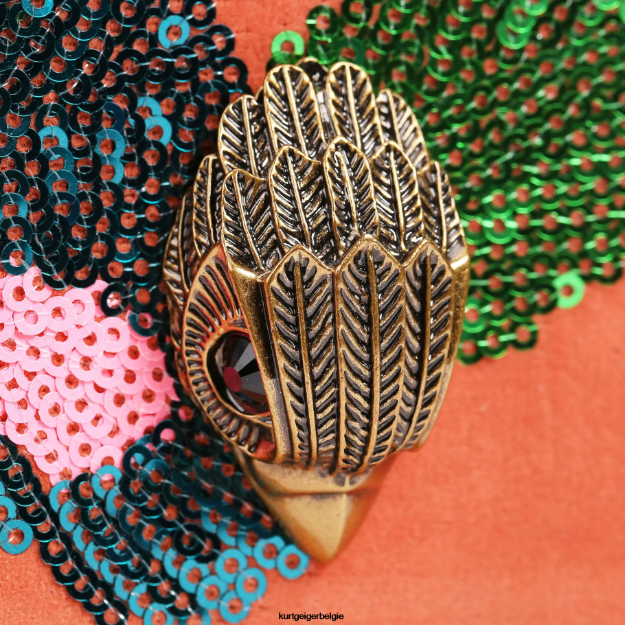 De kleine shoreditch crossbody is gemaakt van zacht fluweel met paillettenversiering. de voorflap is bedekt met een antieke koperen adelaarskop met all-over verendetails.