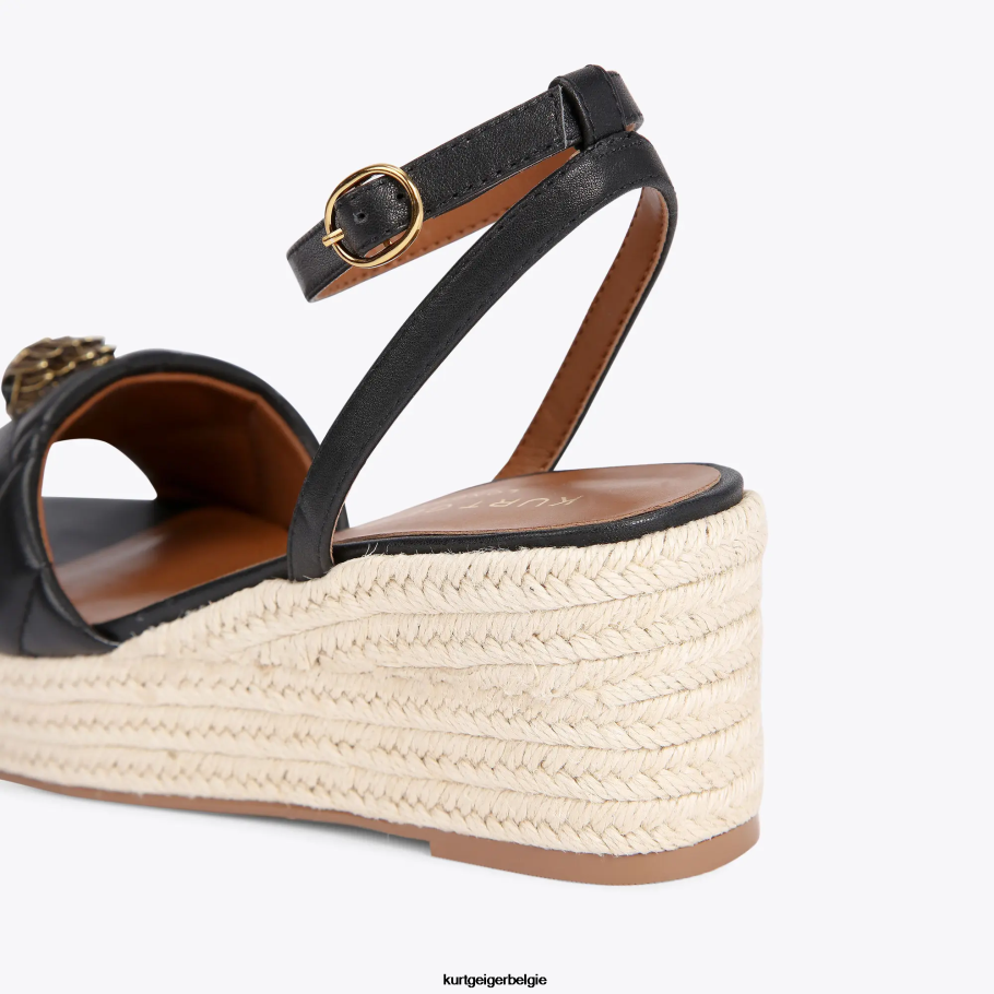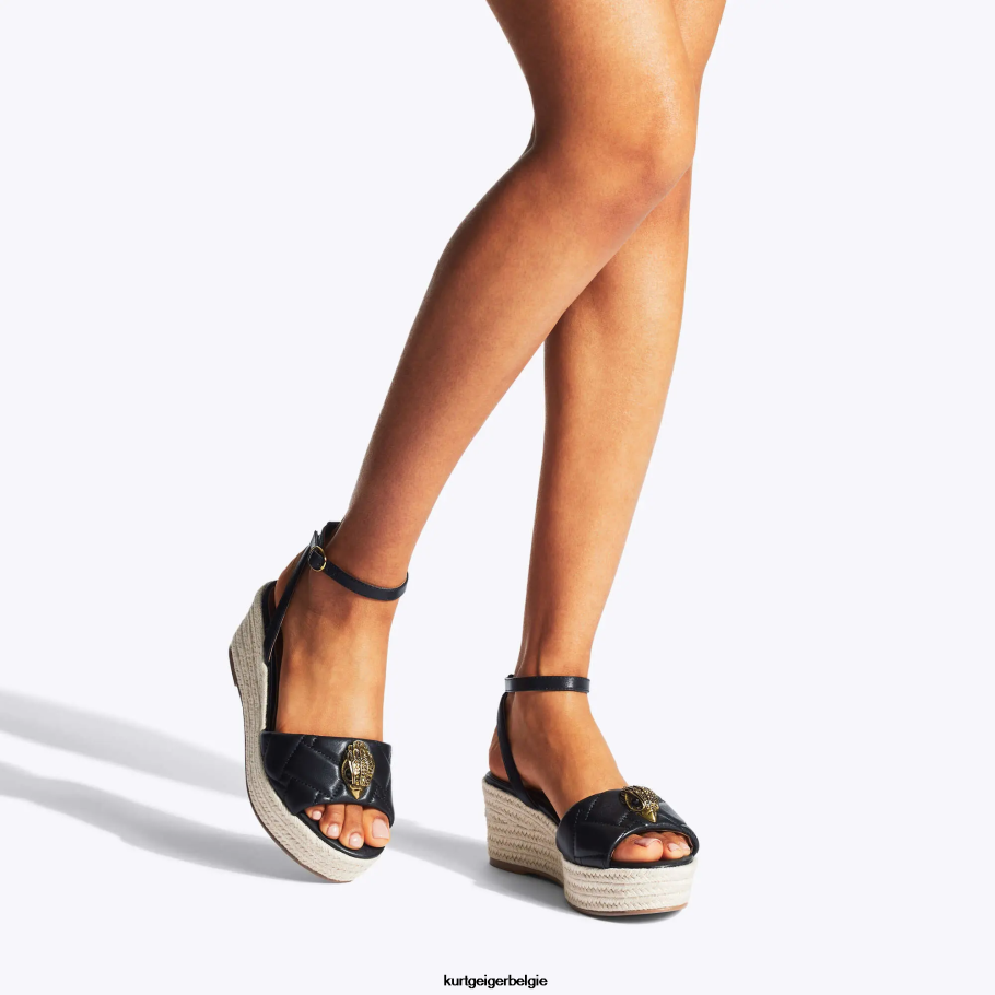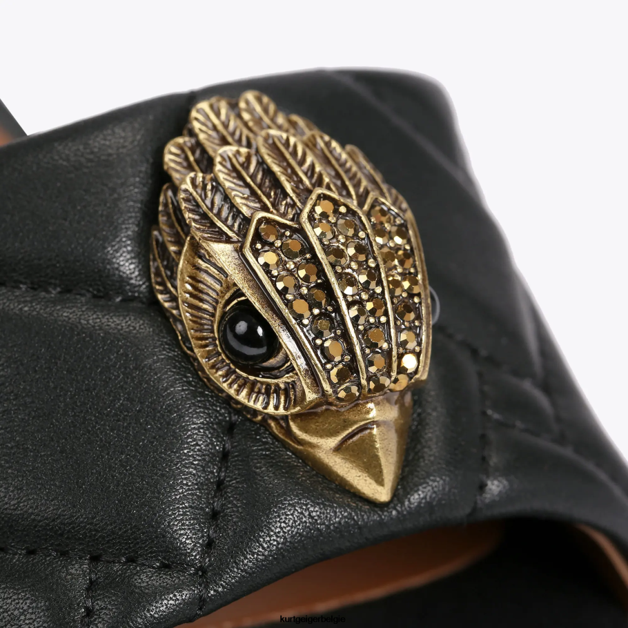 De Kensington-espadrilles hebben een bovenwerk van zacht leer met doorgestikte quiltdetails op de teenband. de adelaarskop van verouderd koper is voorzien van kristallen en zwarte kraalogen.