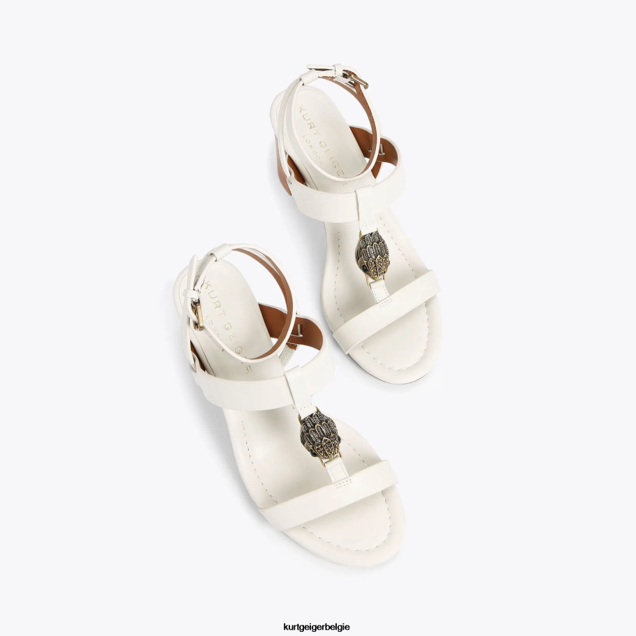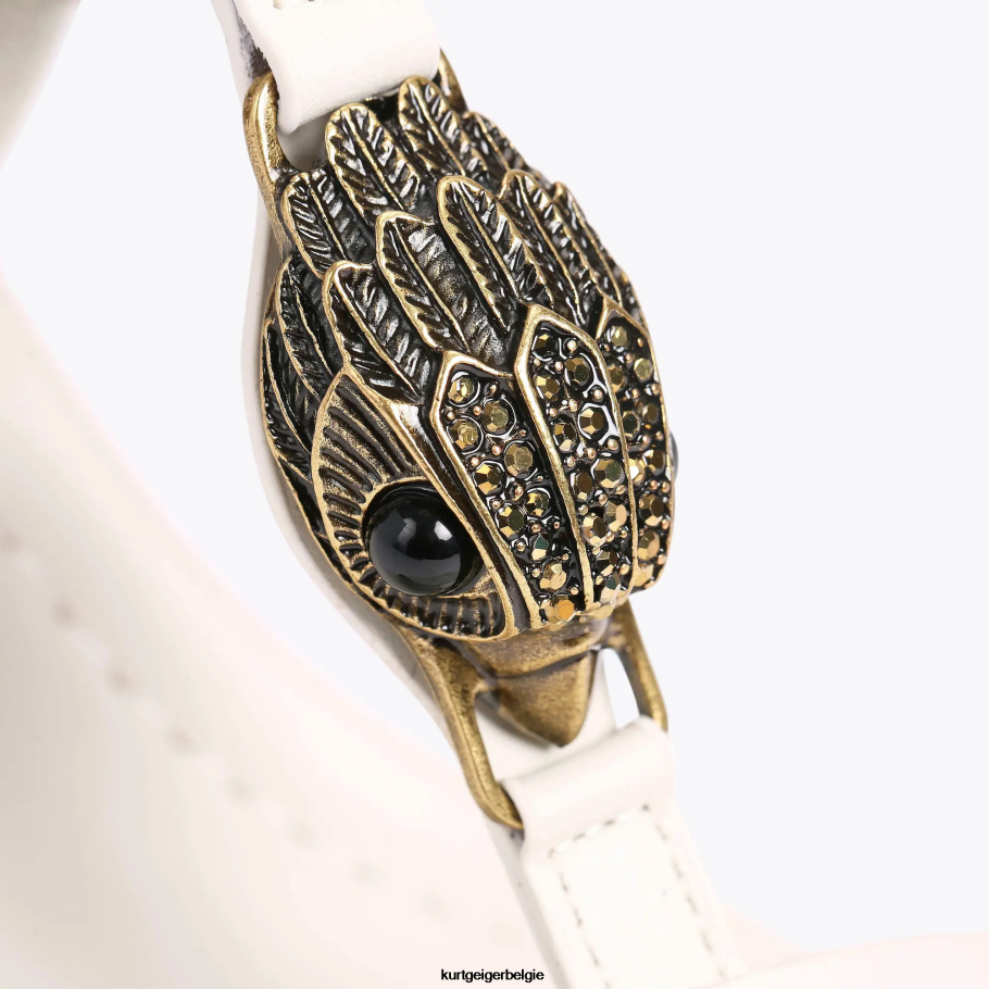 De Hampton T-bar blokhak heeft een bovenwerk van bot gemaakt van leer. de antieke koperen adelaarskop zit in het midden van de banden