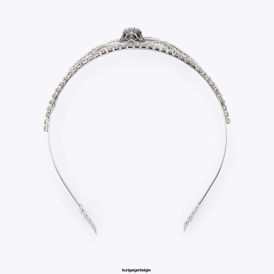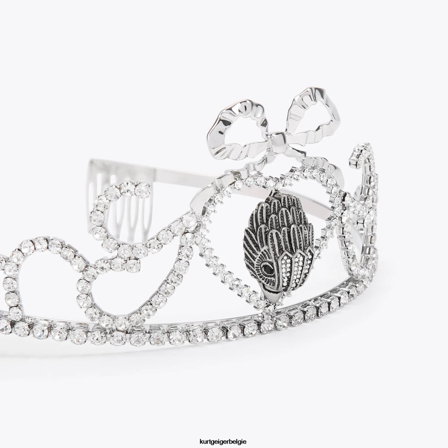 De adelaarstiara heeft zilveren kristallen op de hoofdband en een strikdetail. de antieke zilveren adelaarskop is voorzien van kristallen in het midden van de tiara.