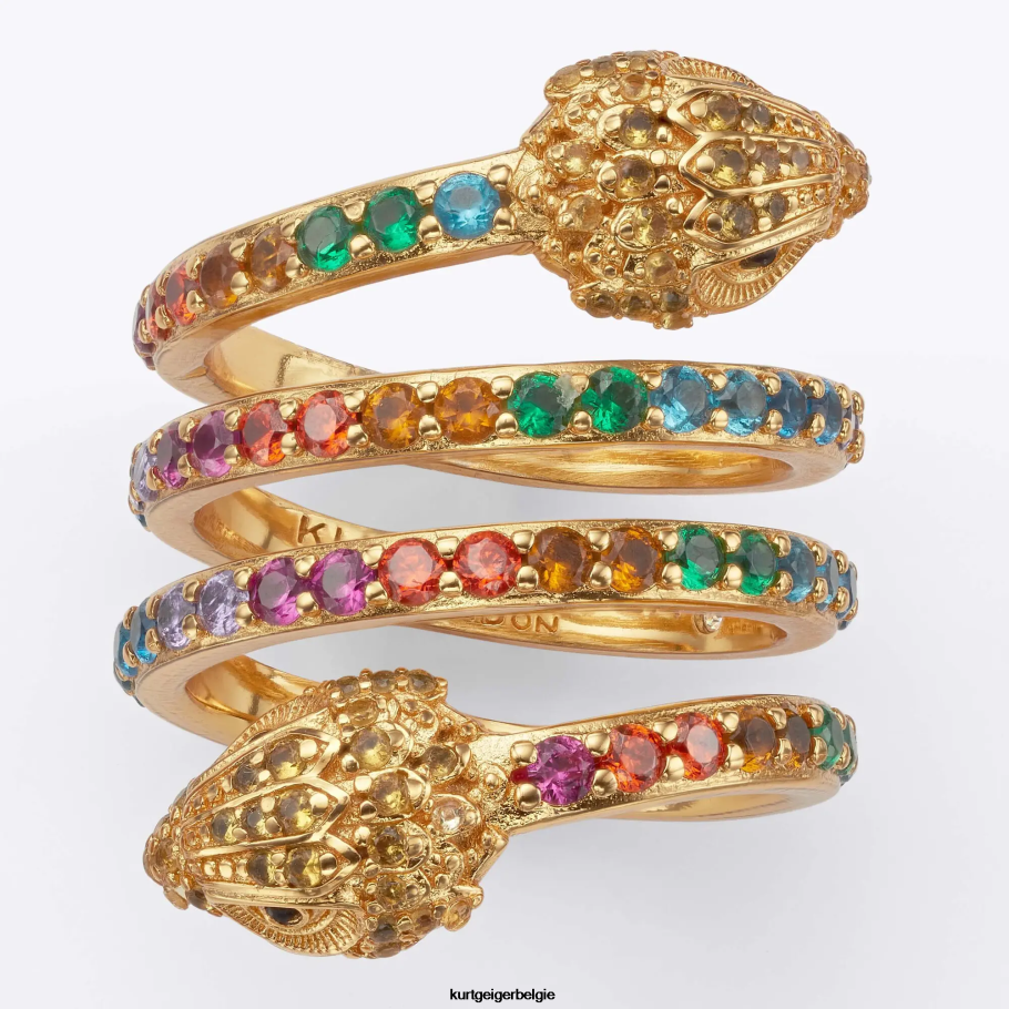 De adelaar-spiraalring heeft een koperen spiraalring met veelkleurig kristal in de band. er zijn koperen emblemen van adelaarskoppen met koperen edelstenen en zwarte kraalogen.