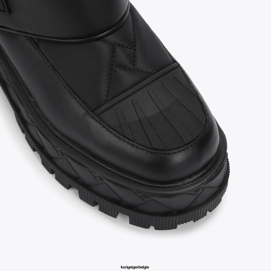 De Londense puffer-enkellaars wordt geleverd met een overgestikt, doorgestikt bovenwerk met drie grote banden over de voet, vastgemaakt met klittenband. de achterkant van de enkel is voorzien van drie lussen tegenover het rubberen detail op de teen.