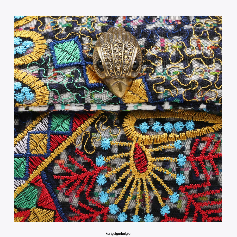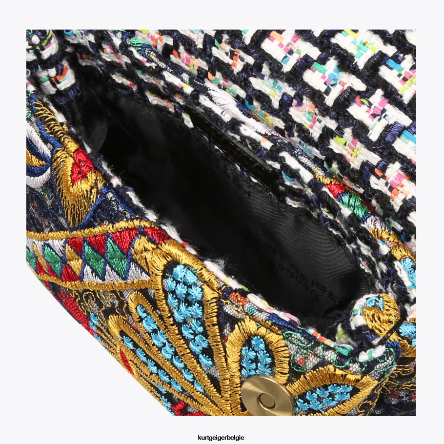 De tweed mini Kensington-portemonnee is gemaakt van tweedstof met een bloemmotief erin gestikt. De antieke koperen adelaarskop is voorzien van ondoorzichtige koperen kristallen en zwarte kraalogen op de voorflap.