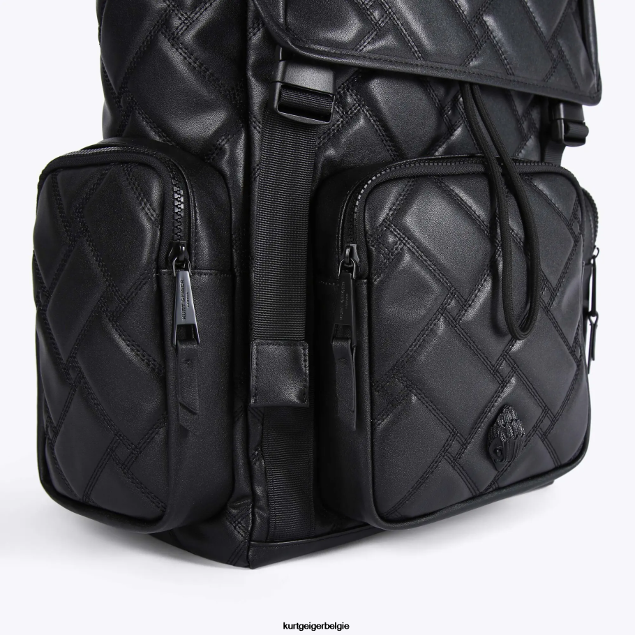 De Kensington-rugzak is gemaakt van zacht lamsleer met de kenmerkende parketgevoerde overstitch-quilt met drie rijen weefpatroon. De zwartmetalen adelaarskop heeft zwarte kristallen ogen op het grote voorvak met ritssluiting.