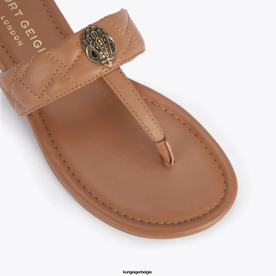 Deze Kensington T-bar sandaal, een toevoeging aan de iconische Kensington-collectie, heeft een teenbandje dat is gemaakt van zacht leer met een geweven patroon. De adelaarskop van verouderd koper is voorzien van ondoorzichtige koperen kristallen op de band.