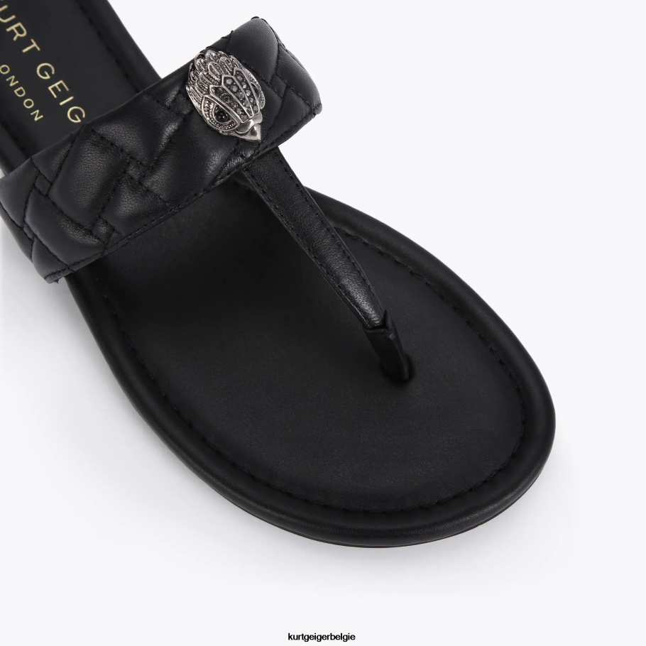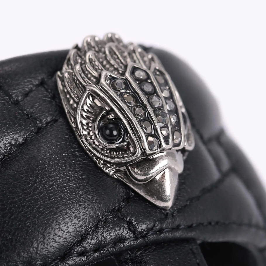 Deze Kensington T-bar sandaal, een toevoeging aan de iconische Kensington-collectie, heeft een teenbandje dat is gemaakt van zacht leer met een geweven patroon. de antieke zilveren adelaarskop is voorzien van ondoorzichtige zilveren kristallen op de band.