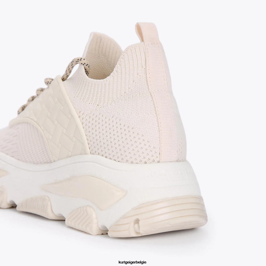 de lettie-sneaker heeft een bovenwerk van botstof met gewatteerde rubberen zijpanelen die de veters aan de voorkant accentueren. de witte rubberen zool wordt geaccentueerd met een beige loopvlak voor grip en stabiliteit.