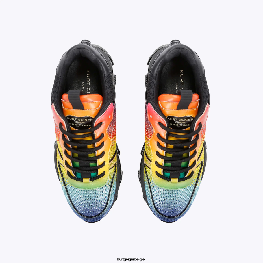 De Lettie Eagle herensneaker is een vetersneaker met een ombre regenboogbovenwerk dat is verfraaid met bijbehorende kristallen. de achterkant van de enkel is voorzien van een voorgevormde zwarte adelaarskop.